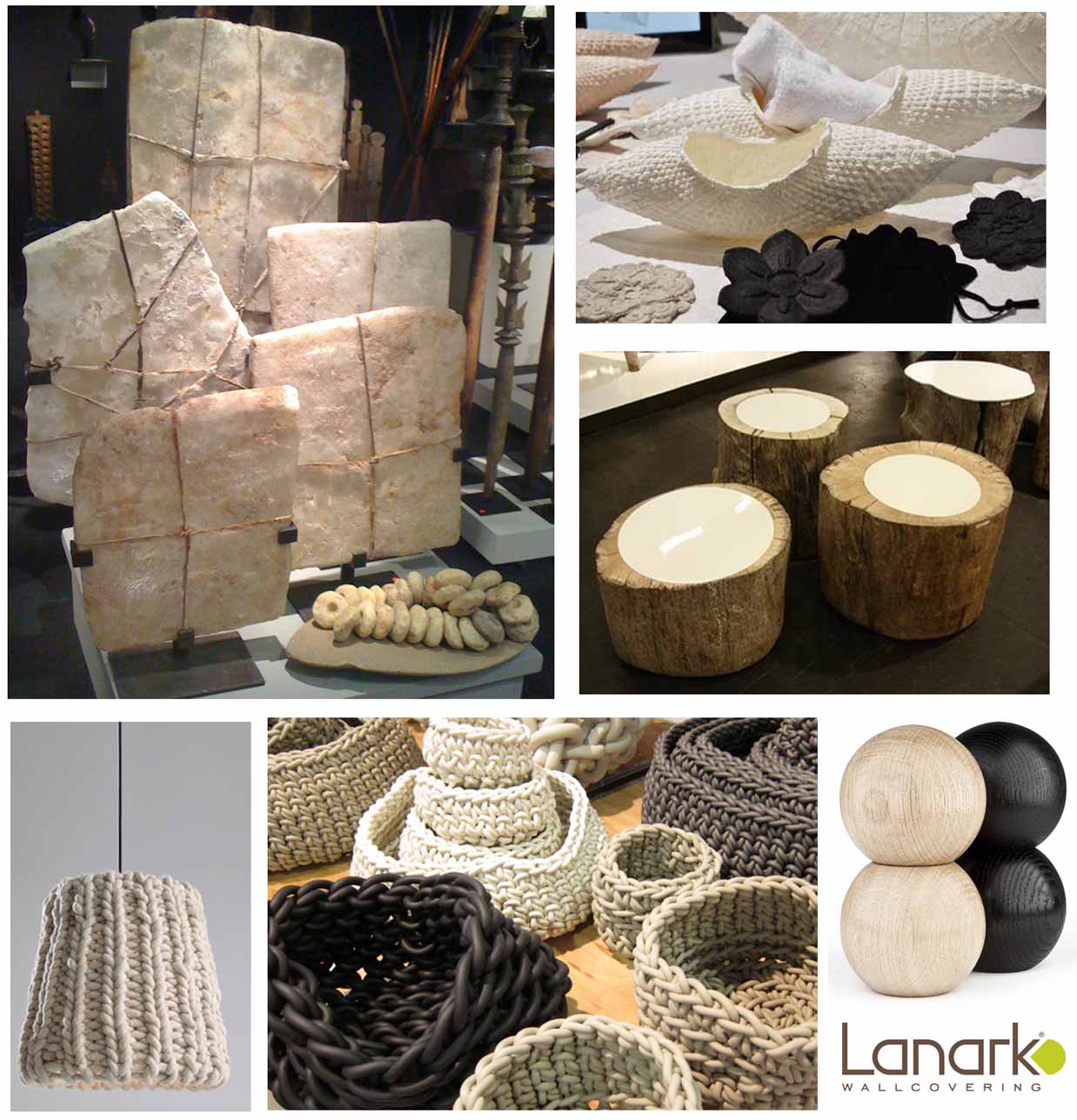 Knit textures and raw nature were highlights of the Maison Objet show this past winter. Woods, wools and stone were crafted into both functional and artistic objects. In shades of greys and neutrals the look was warm yet elegant.